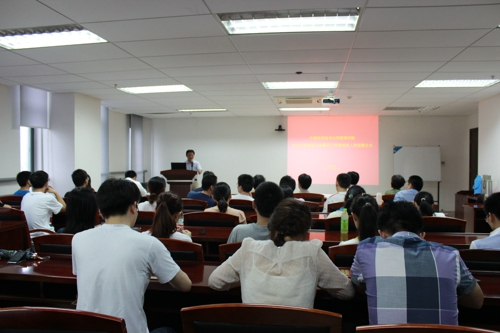 在讲话中,院党委书记曹威麟简要回顾了党的发展历程,畅谈了对党的认识,表达了对党的坚定信念和自豪感;接着他总结了近年管理学院取得的发展和进步,向同学们展示了管理学院美好的未来和前景。