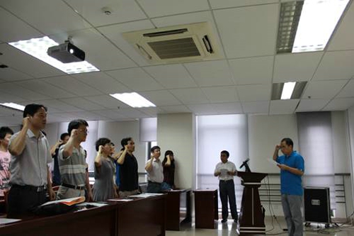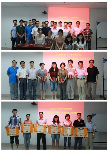 7月5日下午,管理学院2013年优秀党员表彰大会暨新党员入党宣誓仪式在管理科研楼801会议室隆重举行。院党委书记曹威麟、副院长余玉刚出席会议并讲话,院党委委员、各教工党支部书记与本期新发展党员、老党员代表、入党积极分子150余人参加了大会,会议由院党委副书记芮锋主持。