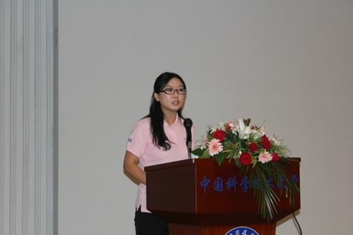 2013级新生代表秦洁同学难掩喜悦兴奋之情,她声情并茂地抒发了成为科大学子的自豪之感和感激之情,言真意切地表达了对知识洗礼、理念熏陶、能力提升的强烈渴望以及勤勉刻苦、砺志品学、学以致用的诤诤誓言。