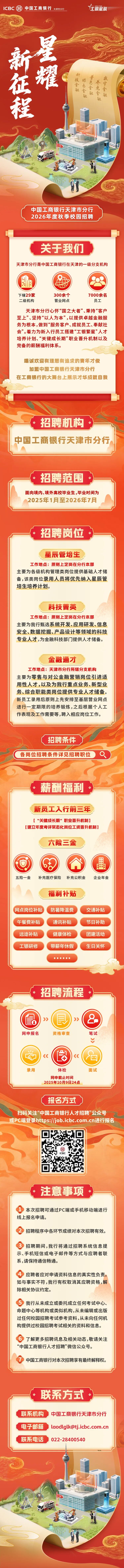 中国工商银行天津市分行2026年度秋季校园招聘正式启动