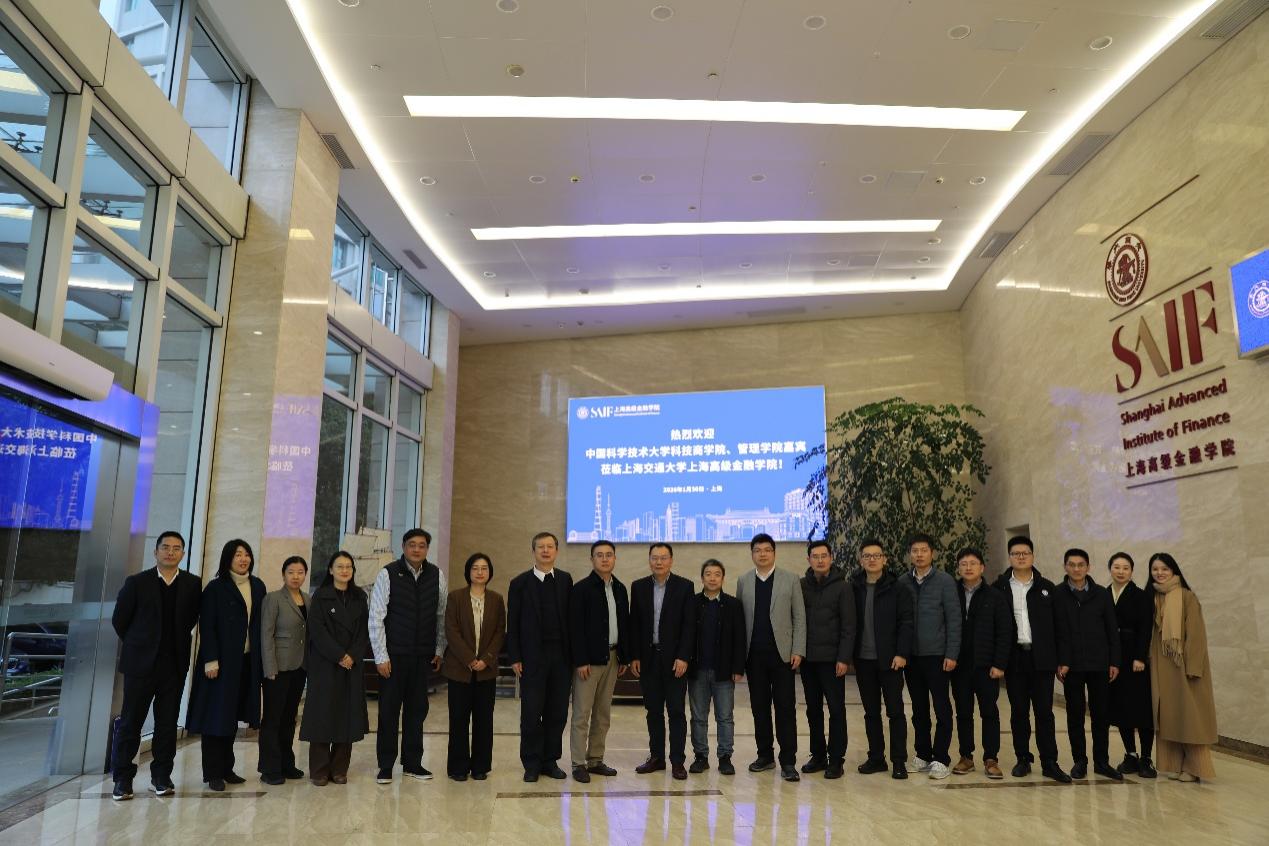 1月30日至31日,中国科学技术大学科技商学院、管理学院由校党委常委、组织部部长、学院党委书记申成龙带队,赴复旦大学管理学院、上海交通大学上海高级金融学院、同济大学经济与管理学院开展调研交流活动。中国科大科技商学院、管理学院执行院长叶强,学院党委常务副书记吴杰及学院领导班子其他成员参加调研交流。安徽省发展改革委合肥综合性国家科学中心工作处处长胡先锋,中国科大财务处处长姚子龙、副处长路媛媛,人力资源部副部长高维孝,发展规划处副处长谈世鑫等指导单位代表一同参与调研。