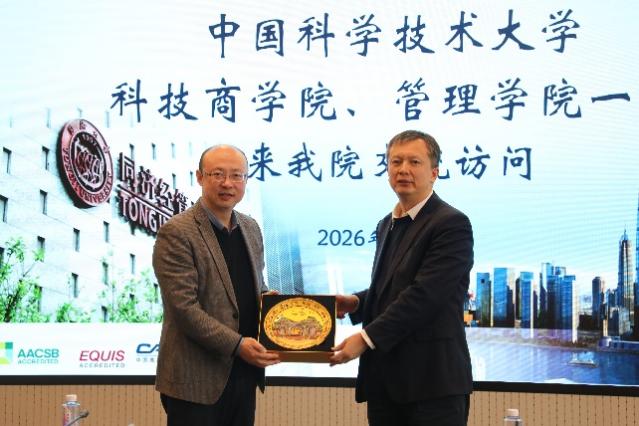 1月31日上午,学院调研团队前往同济大学经济与管理学院开展交流。期间,同济大学校长杨金龙院士专程前来参加座谈,他结合两校办学特色与发展理念,分享了对商科教育高质量发展的思考,并对两校加强学科交流、深化合作共赢提出了殷切期望。