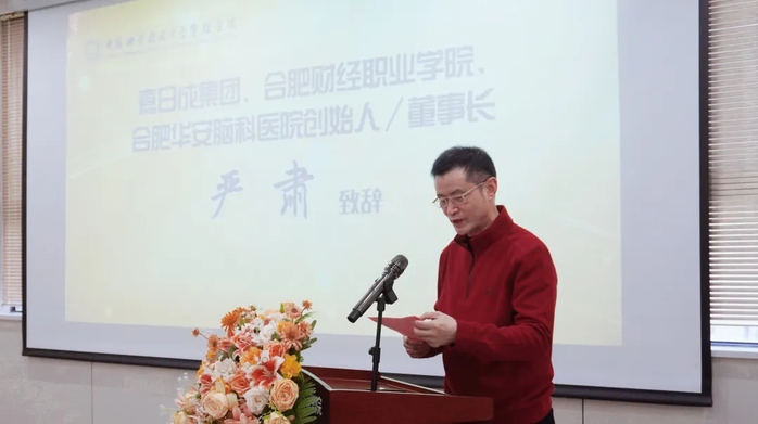 安徽医科大学临床医学院附属华安脑科医院董事长严肃致欢迎辞,提出在新的一年加强学术建设,与健康分会紧密合作,推动健康行业创新发展。