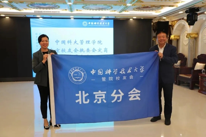 在会旗交接仪式中,上一届北京校友会会长王磊将会旗交到新一届会长陈金英手中,代表着校友会的薪火相传。陈金英会长代表新一届执委会表示:将在管理学院校友会的领导下,不负众望,共同努力,再接再厉,为广大校友提供更好的服务、更多的资源、更大的展示平台。