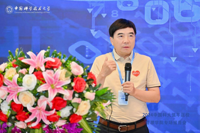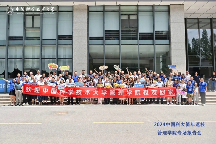 7月6日上午,管理学院在管理科研楼二楼报告厅顺利举办“2024中国科学技术大学值年返校管理学院专场报告会”活动。众多校友携昔日回忆,踏上归途,共赴这场学术交流与情感重逢的盛大聚会。管理学院党委书记兼副院长古继宝、国际金融研究院副院长翁清雄、院长助理王潇、管理学院校友办公室主任凌六一、管理科学系执行主任刘和福、统计与金融系执行主任郑泽敏、EMBA中心主任刘志迎、工程管理中心MLE项目主任郭晓龙、苏州教学点负责人王卫平、上海教学点负责人苟小菊以及管理学院教师代表和行政人员代表受邀参加。活动由上海教学点招生主管武敬萍主持。