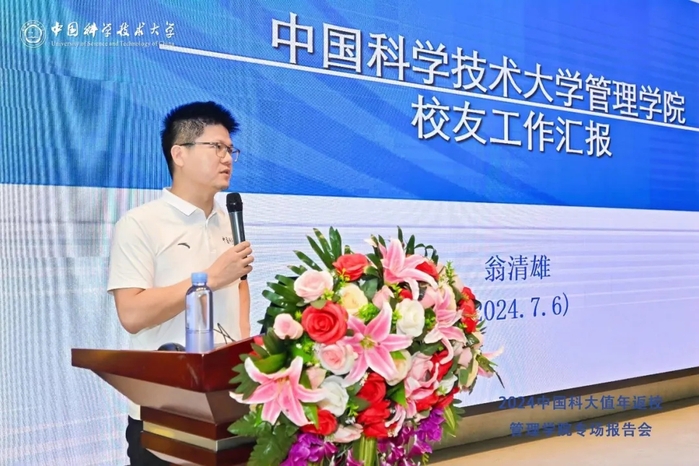 随后,翁清雄对管理学院校友工作进行介绍。管理学院校友约有3万人,目前链接学校的方式有区域性校友分会、行业性校友分会以及兴趣爱好等俱乐部形式,丰富了校友的后毕业时光;校园孵化器的形式,支持了校友创业项目的落地;班级的形式,赓续了校友的同窗之情;创新实践协会,沟通了在校生和毕业校友的发展……校友组织的健康发展,在不断吸引新鲜血液,未来定将更富活力、更具吸引力。未来,希望校友企业可以与学院合作,成为学院的实践基地,给在校生提供向龙头行业学习的机会。同时,校友捐赠的形式也可以多种多样。像今年,有很多“科大搬砖人”在炎炎夏日忙得不亦乐乎,也希望校友在各个领域的成绩和贡献能够与学院分享,及时更新校友信息,可以让更多的人看见中国科大管理学院的力量。