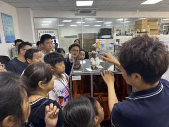 进入明德楼之前,小朋友们都争先恐后打卡盖章,随后领队商荣亚老师在一楼展厅向大家详细介绍了中国科大苏州高研院的现状和发展规划,让我们对高研院的发展更加期待。然后小朋友开启了明德楼科普点的探险之旅。明德楼科普点则通过多模态诊疗工程实验室、MIRACLE 实验室深刻展现了现代医疗科技的飞速进步和无限可能。每一个科普位都吸引了大量观众驻足观看,亲手体验。这些展示不仅让人们感受到了科技的魅力,更激发了大家对未来科技的无限遐想,也在小小“科二代”心中种下了科技的梦想。