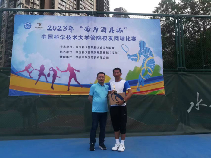 中国科大管院深圳网球俱乐部的校友们每周坚持1-2次固定时间(周五晚上、周末)打球。除了日常训练和不定期的组织小组赛外,年终还会发起一场年度比赛。本次年度网球赛事由管院校友会深圳分会江培强校友(SM0621)赞助。除了颁发奖杯外,获奖选手还会赢取现金大奖。冠军奖杯作为每年冠军轮庄,奖杯唯一,每届冠名刻印在奖杯上,次年年终比赛再拿回组织颁发给下届冠名得主,这让赛事更加隆重和有意义。