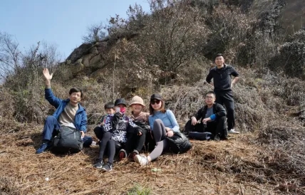 恰逢周末,阳光明媚,大家背上行囊,从驴友常走的绝望坡出发上山。走走歇歇,花了近一个半小时,终于到达山顶。稍事休息后,大家拍照留念,留下了一段美好的时光。