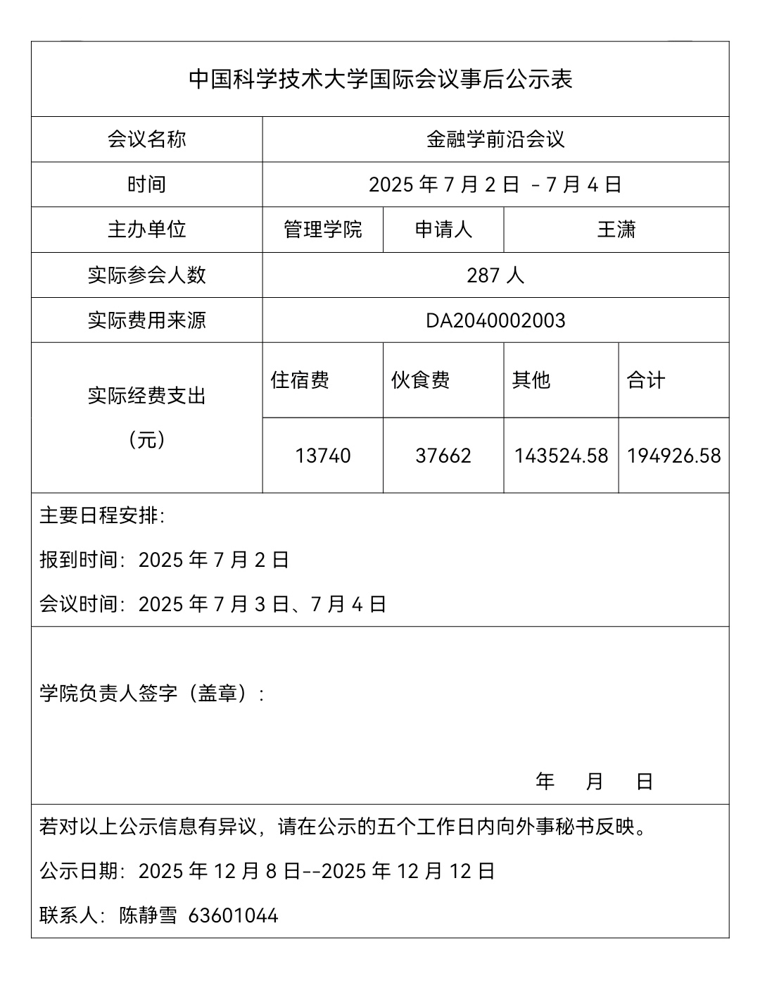 中国科学技术大学国际会议事后公示表(金融学前沿会议)