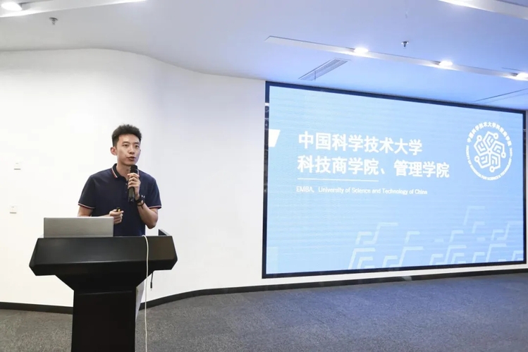 在热烈的交流讨论之后,朱荣嘉老师向与会嘉宾详细介绍了管理学院及科技商学院的概况与发展。他特别展示了中国科大为响应习近平总书记提出的国家战略需求,在解决科技与经济“两张皮”问题上所取得的创新性成果与突破。