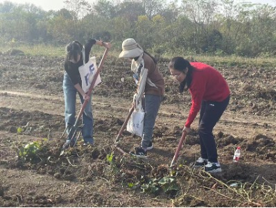 大家在挥洒汗水中共同参与红薯采挖劳动。这种“沾泥土、冒热气”的实践教育,让师生党员们直观地感受到了乡村振兴战略落地的现实意义与广阔前景。