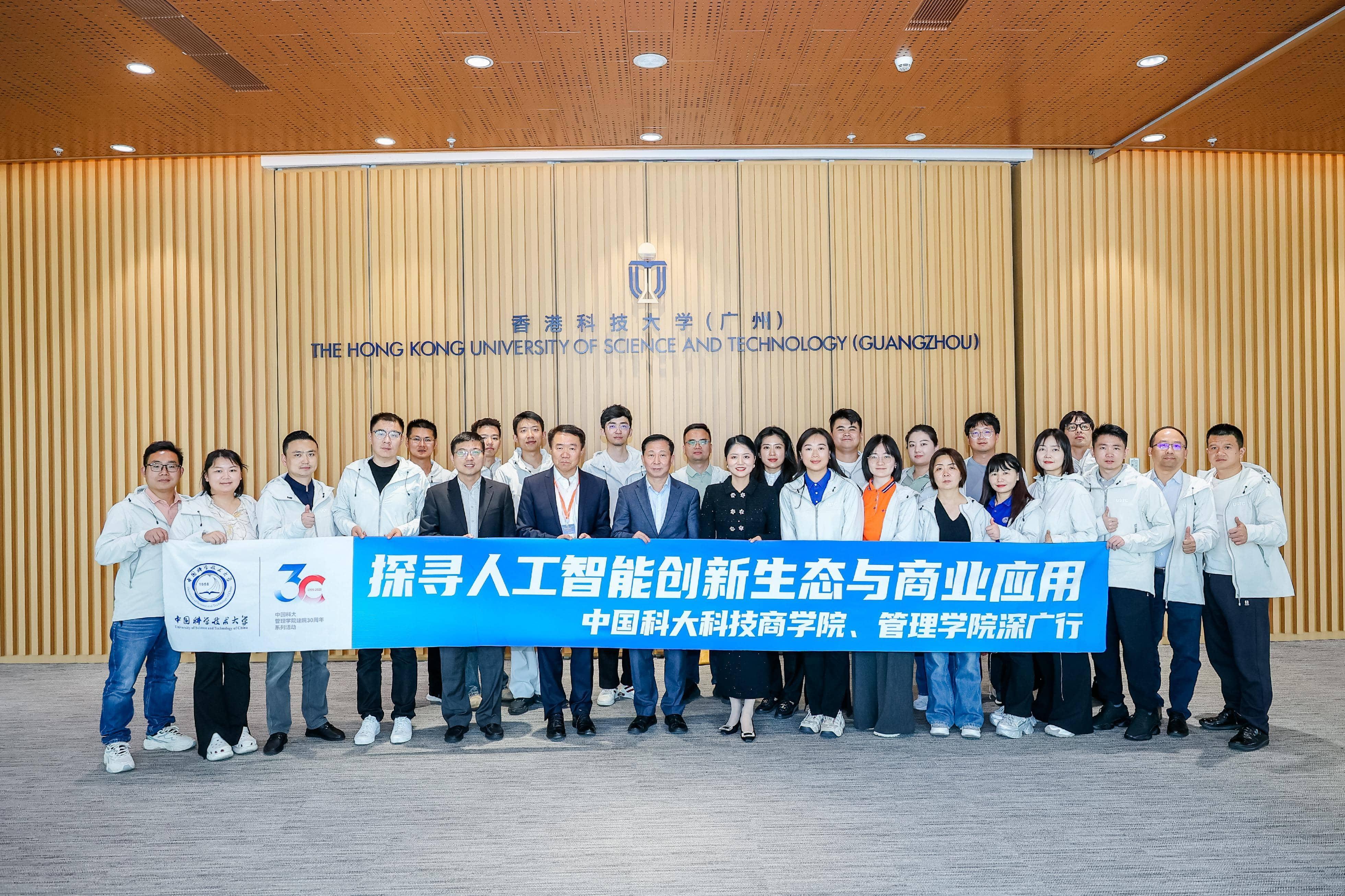 2025年12月11日至13日,中国科学技术大学科技商学院、管理学院组织30多位EMBA、MBA等专业学位师生走进粤港澳大湾区核心城市深圳与广州,开展以“科商引领 智瞰湾区”为主题的人工智能创新生态与商业应用深度研学活动。本次活动由EMBA中心副主任范秀、专业学位办职业发展与就业主管吴晖老师、EMBA中心招生主管朱荣嘉老师全程带队,由中国科大管理学院创新实践协会承办,精心遴选中国科大校友标杆企业,通过企业参访、主题分享、研讨交流、学术高地对话、校友互动等多个维度,为学员搭建了链接科技前沿、商业实践与未来趋势的立体化学习平台。