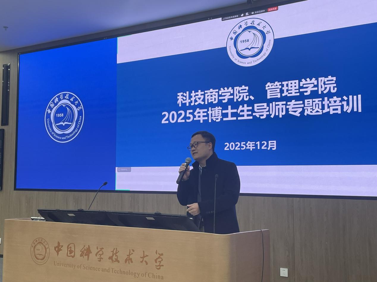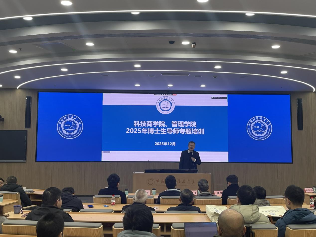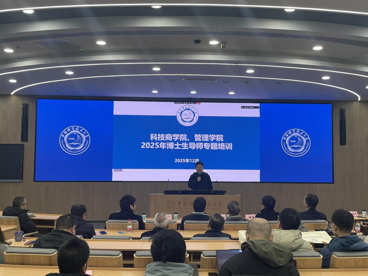 为深入贯彻落实研究生教育立德树人根本任务,进一步提升博士生培养质量,加强导师队伍建设,科技商学院、管理学院于2025年12月24日在东校区第五教学楼5101教室组织举办了2025年博士生导师专题培训。