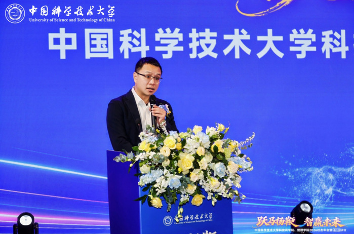 中国科学技术大学副校长傅尧教授率先致辞。他深情回望科大为“两弹一星”而生的红色渊源,强调“红专并进、理实交融”的基因早已融入科大人的血脉,而遍布各行各业的校友,正是母校最生动的名片与最坚实的底气。面对科技创新的浪潮,傅尧指出:科技与管理、产业、资本的深度融合是时代命题,科技商学院与管理学院的融合发展,既是面向未来的系统性升级,更是构建“资本赋能科创、科创引领产业”良性循环的关键布局。新院区的即将启用,将成为校友携手母校、共创未来的新起点。