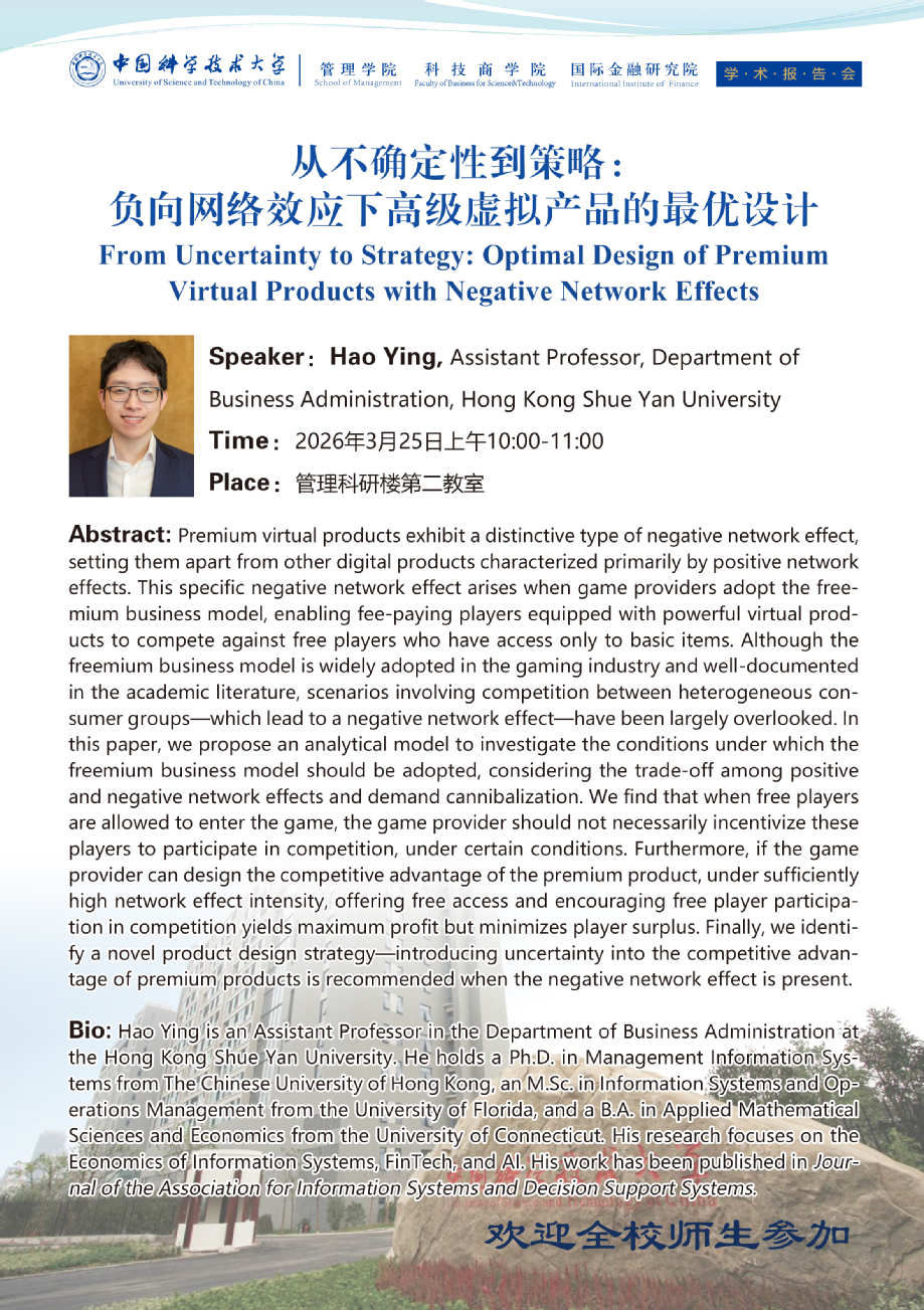 管理学院学术报告会(26034号)