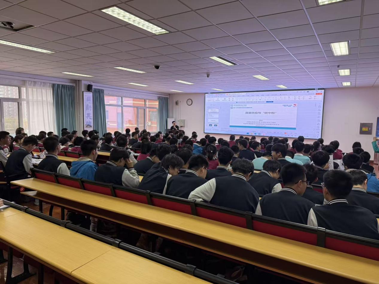 在抚顺市第二中学,中国科大环境科学与工程系蔡琛研究员以“环境科学与人类未来”为主题,展示学校交叉学科与可持续发展研究实力。学校自主研制的KQGZ有机光还原剂实现PFAS高效脱氟,绿色磷化铟基量子点LED创造亮度世界纪录,相关成果发表于《自然》等国际顶级期刊。