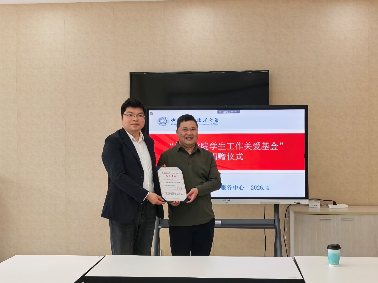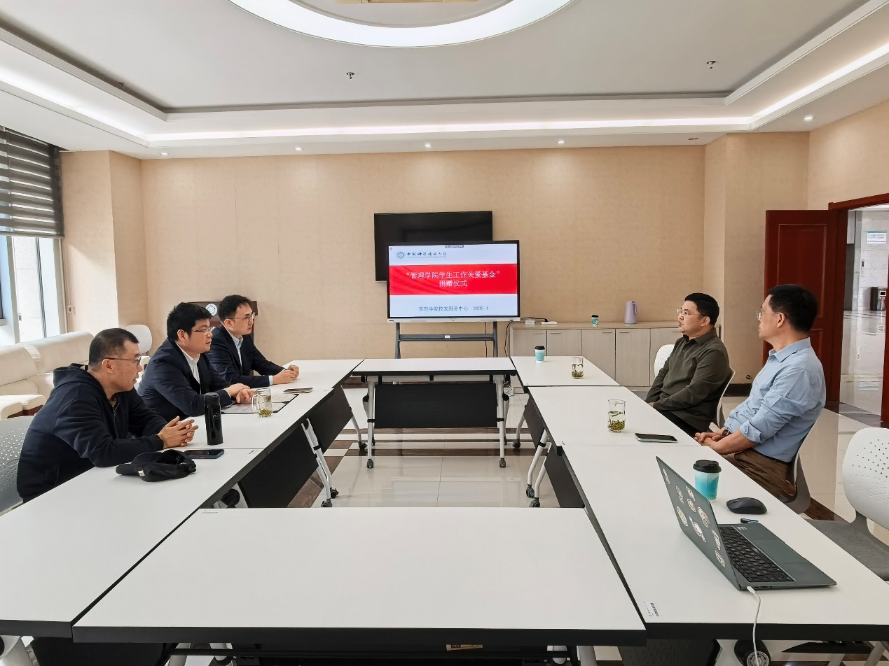 4月27日,中国科学技术大学科技商学院、管理学院举办“管理学院学生工作关爱基金”捐赠仪式,我院2014级EMBA校友林先军代表第四届EMBA研究生会捐赠设立首笔学生工作关爱基金,用于激励班主任工作,助力学院人才培养事业发展。学院党委常务副书记、副院长吴杰教授,专业学位教育中心学术主任姜力教授,学院校友服务中心主任赵征老师、张增田老师出席捐赠仪式。